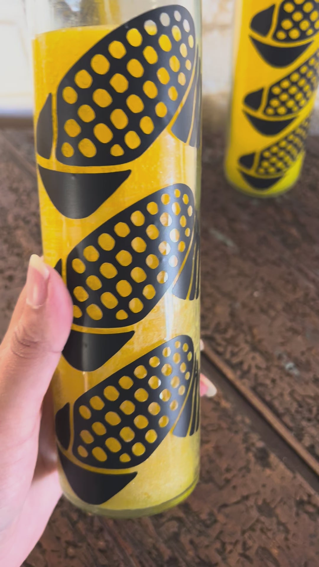 Corn, an ancient source of food and still used in every corner of Mexico for maza. This is a Corn symbol prayer candle from our Día de los Muertos candle collection.