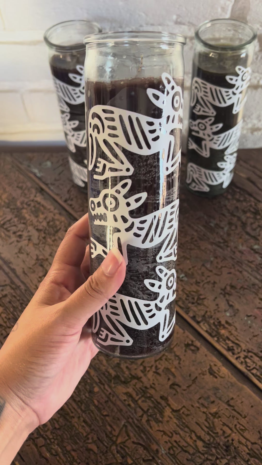 Xolo design candle, this dog of Mexico is a sacred creature. They're believed to be protectors and spirit guides, thought to accompany human souls on their journey through the underworld to their final resting place.